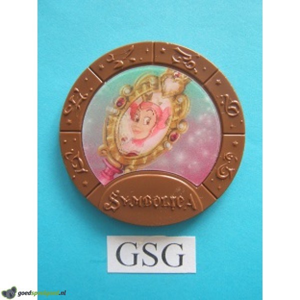 Uit de collectie van de Symbolic Magische Medaillons van de Efteling is dit Pardijns handspiegel. Dit medaillon is afkomstig uit 2017 en is uitgegeven ter gelegenheid van de opening van de attractie Symbolica in de Efteling.