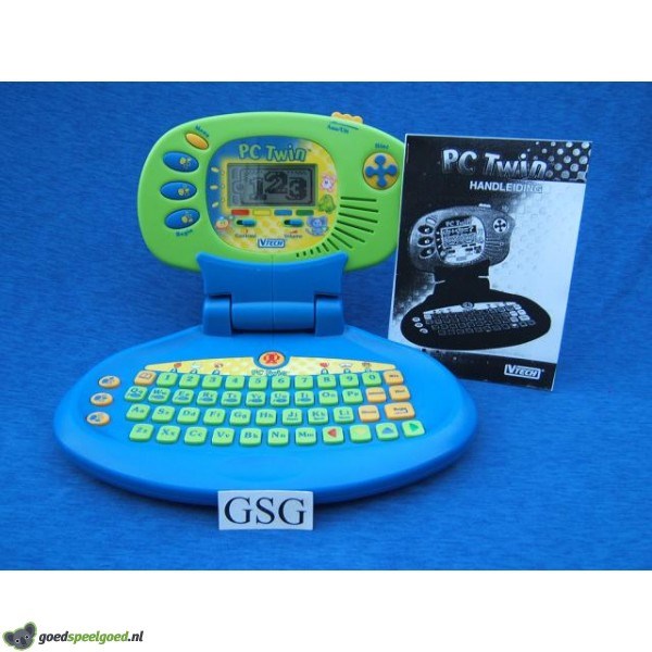 De PC Twin is een modern vormgegeven speel-en leercomputer met 22 interessante en educatieve activiteiten. De PC twin heeft een uitneembare \"little twin\", die uw kind overal mee naar toe kan nemen. De activiteiten zijn onderverdeeld in drie hoofdgroepen: Taalspellen, Rekenspellen en Edu-games & Muziekspellen. De PC Twin leert uw kind letters en woorden herkennen, optellen en aftrekken in combinatie met leuke behendigheids-en muziekspellen. Deze PC Twin is de ideale voorbereiding voor de groepen 2 en 3 van de basisschool. Er zitten ook nog de volgende 10 melodietjes in de PC Twin: Row row row your boat, Entertainer, Mary had a little lamp, Yellow rose, pop goes the weasel, Blauwbilgorgel, De zevensprong, Schip moet zeilen scheepje ligt aan wal, Joepie joepie is gekomen en Tussen Keulen en Parijs. Kompleet met batterijen en handleiding. Het beeldscherm van de PC Twin is eenvoudig in te klappen waardoor hij ook makkelijk is op te bergen en te vervoeren. Kompleet met batterijen en handleiding. Geschikt voor de leeftijd vanaf 5 jaar. Werkt op 3 AAA batterijen. De PC Twin is tevens uit te breiden met verschillende Matchbooks. Het is ook mogelijk om een adapter (9 V, 300 mA) aan te sluiten die voldoet aan de EN 60742.