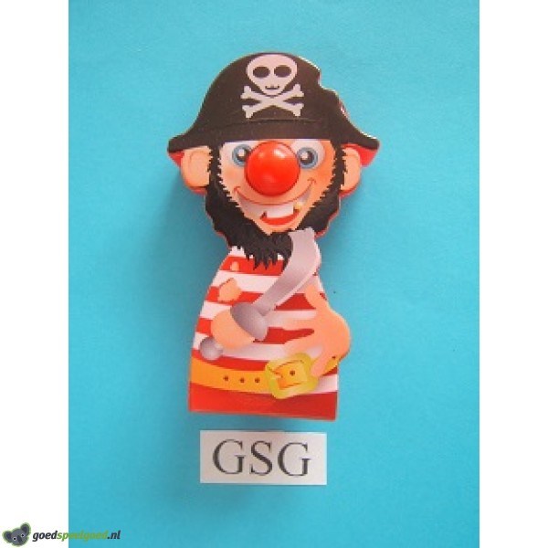 Uit de collectie van de Rode Neuzen Moppenfestival van de Efteling is dit de piraat. Dit figuurtje is afkomstig uit 2016.