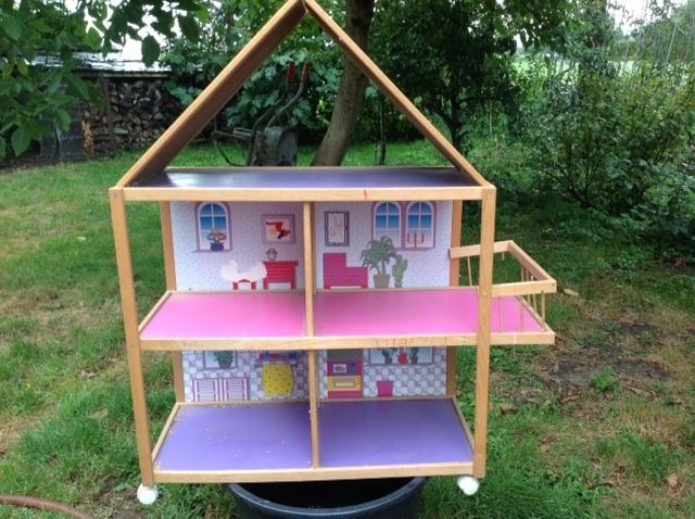 Poppenhuis groot - op wielen, verrijdbaar- met meubels- afmeting: hoogte 115 - breedte 100 - diepte 38,5- gezien de grote , zeer geschikt voor peuterspeelzaal- 37,50