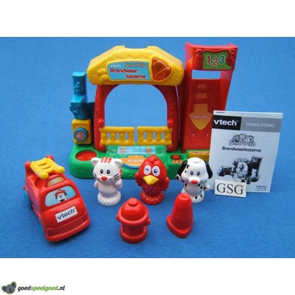 Uw kind heeft spetterend speelplezier met de Smartville brandweerkazerne. Glijd van de nood glijbaan, druk op de alarm-toets, de knipperende bel-toets en de poort-toets om zinnetjes, geluiden en muziek te horen. De Smartville brandweerkazerne bevat drie interactieve dieren. Plaats de dieren op de sensor en leer hun naam, geluid en hoor leuke zinnetjes. Fantasie komt tot leven in de magische wereld van Smartville, waarbij de vele verschillende speelfiguren zorgen voor urenlang speelplezier. Bij deze brandweerkazerne zitten: een hond, een kat, een vogel, een pylon, een brandkraan en een brandweerauto. Er zitten 5 melodietjes in de brandweerkazerne, te weten: Zakdoekje leggen, If you are happy, 1 2 3 4 hoedje van papier, De wielen van de bus, You are my sunshine en 4 gezongen liedjes, te weten: Rijden in een brandweerauto, Rijd snel mee en blus het vuur, De Smartvilledieren komen helpen en Als er iets gebeurt. Kompleet met batterijen en een handleiding. Geschikt voor de leeftijd vanaf 12 mnd. Werkt op 2 AA batterijen.