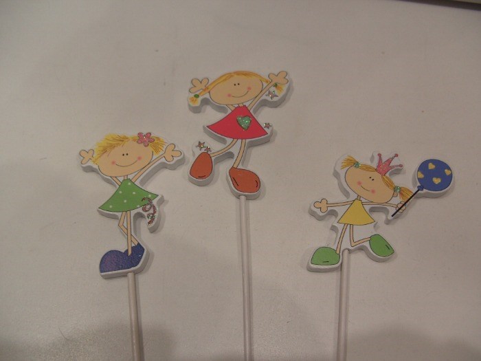Leuk houten stekers met spelend meisje.
