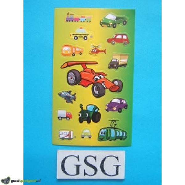 Stickervelletje met 15 stickers die betrekking hebben op het thema transport. Let op achtergrondkleur kan variëren.