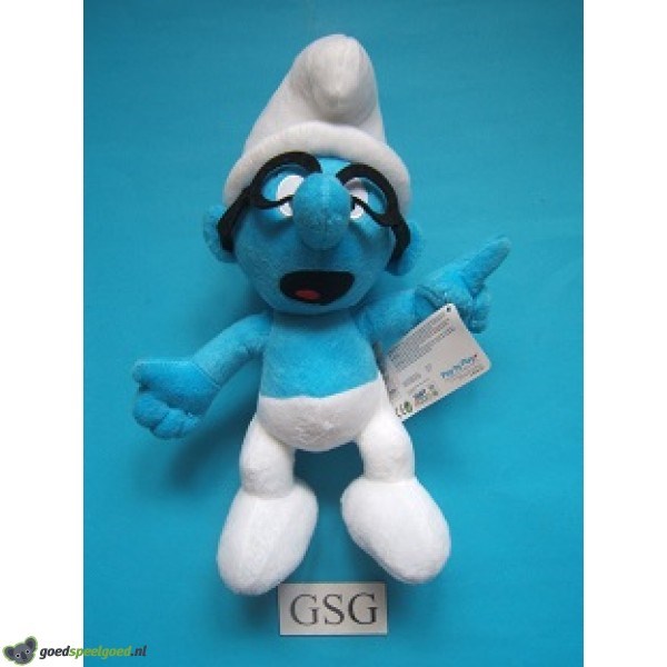 Kunnen jullie door een sleutelgat......? Wie kent de smurfen niet? Deze schattige blauwe wezentjes die het altijd weer aan de stok hebben met hun eeuwige vijand Gargamel en die ellendige kat Azarel. Deze brilsmurf is ca. 34 cm groot. Is nog helemaal nieuw.