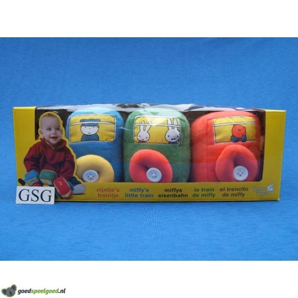 3-delige stoffen trein met Nijntje figuren erop. De delen zijn met klittenband aan elkaar bevestigd. De wielen kunnen los worden gemaakt door middel van de grote knopen. Zeer kindvriendelijk vanwege het zachte oppervlak. Kompleet met doos.
