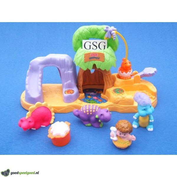 6-delige baby dinoland set bestaande uit: dinoland, 3 baby dieren, bak met eten en een caveman. De dieren hebben allemaal hun eigen plaatsje in de dierentuin. Druk op de voetstap van de baby dino en er komen geluidjes uit het baby dinoland. Druk je aan de zijkant op de handel dan schiet de dino de boom in. Kompleet met batterijen. Werkt op 3 AA batterijen.