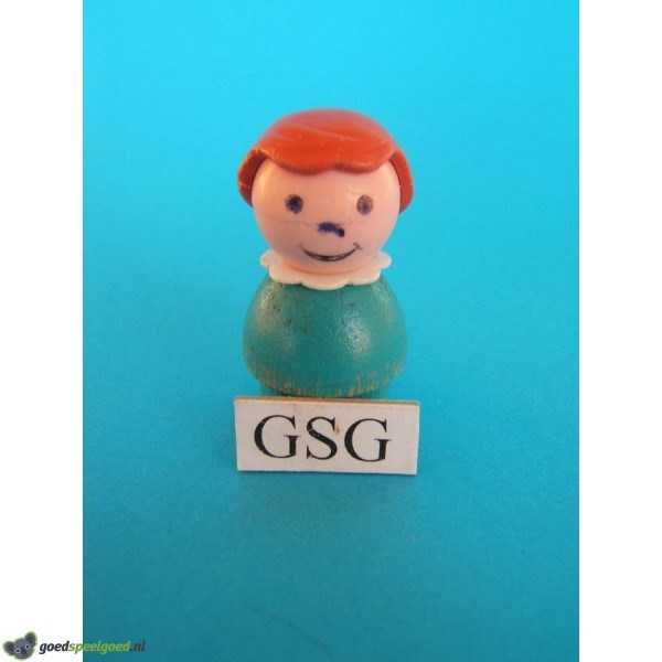 Blauw meisje met bruin haar en een lachend gezicht. Dit houten poppetje kan overal bij de Play Family collectie gebruikt worden als aanvulling.