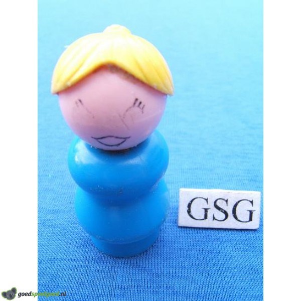 Blauwe vrouw met geel haar en een lachend gezicht. Dit kunststof poppetje kan overal bij de Play Family collectie gebruikt worden als aanvulling.