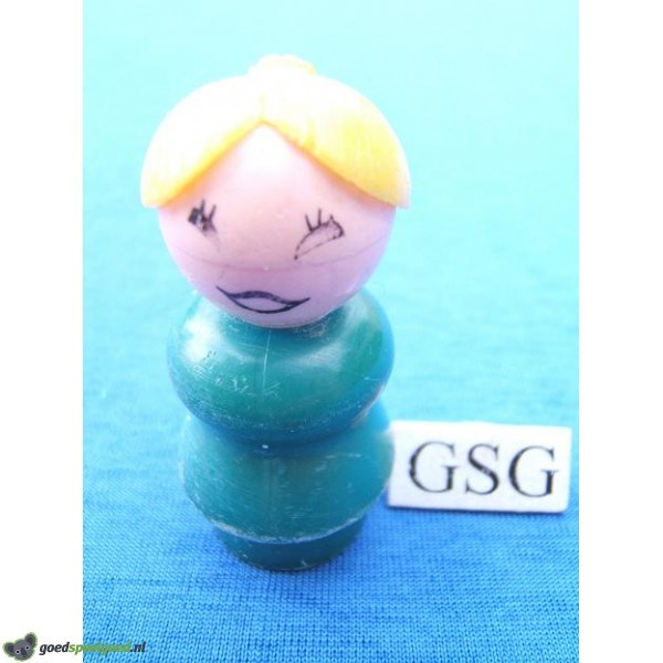 Groene vrouw met geel haar en een lachend gezicht. Dit kunststof poppetje kan overal bij de Play Family collectie gebruikt worden als aanvulling.