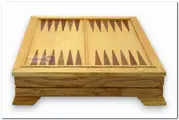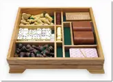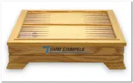 Een fraai gevormde houten spellendoos (tafelmodel).