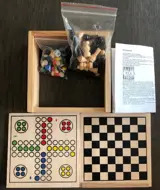 1x Reis gezelschapsspel compleet met 4 spellen in kistje. Spiksplinter nieuw in originele onbeschadigde verpakking. Kistje 13 x 13 cm