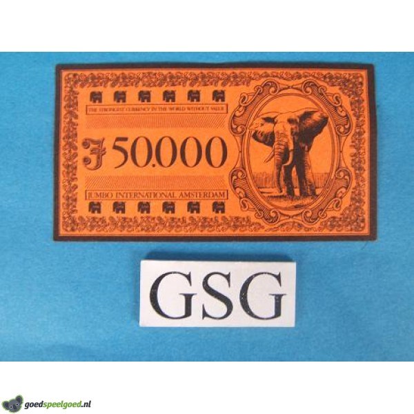 Biljet met een eenheid van 50.000 in de kleur oranje. Let op er kunnen kleur nuanceverschillen zitten in de biljetten!