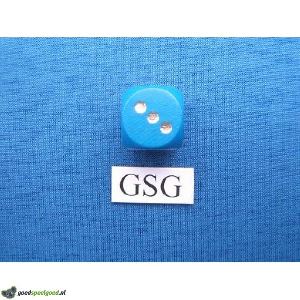 Houten blauwe dobbelsteen met gouden ogen en afgeronde hoeken. Deze dobbelsteen is 16 mm groot en het is de meest vookomende dobbelsteen die zowat bij elk spel kan worden gebruikt. Denk hierbij aan de spellen: Risk, Monopoly, Ganzenbord, Yahtzee, Mens erger je niet etc. Voor het spel Risk kunt u ook een komplete set dobbelstenen bestellen, zie artikel nummer 60072-02.