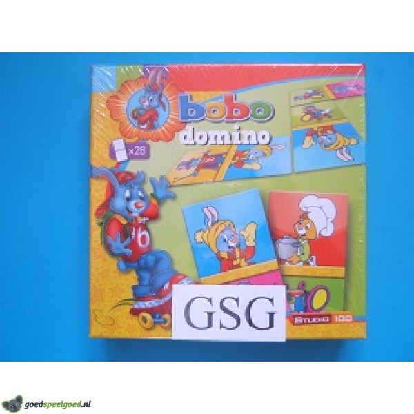 Het bekende dominospel, uitgevoerd met kleurrijke afbeeldingen van Bobo en zijn vriendjes. Het is de kunst om steeds dezelfde afbeelding aan te leggen, aan een kaart die al op tafel ligt. Wie het eerst alle kaartjes kwijt is, heeft gewonnen! Kompleet met handleiding. Geschikt voor 2-4 spelers in de leeftijd vanaf 3 jaar. Zit nog in de ongeopende originele verpakking.