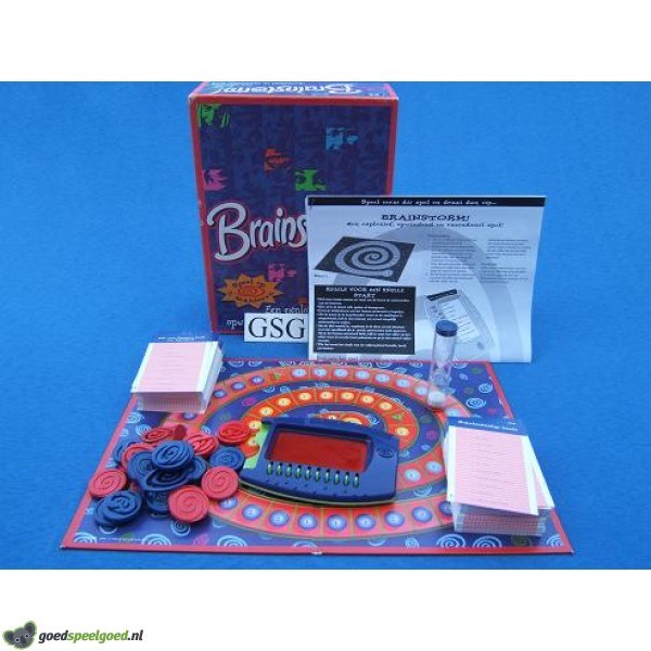 Brainstorm is een spel dat gaat over bepaalde onderwerpen. Elke kaart bevat een onderwerp en 10 antwoorden. Probeer als team zoveel mogelijk antwoorden goed te hebben en verdien hiermee zoveel mogelijk punten. Het team dat als eerste aan het einde van de spiraal op het bord is heeft gewonnen. Kompleet met handleiding. Geschikt voor 2 teams in de leeftijd vanaf 12 jaar.