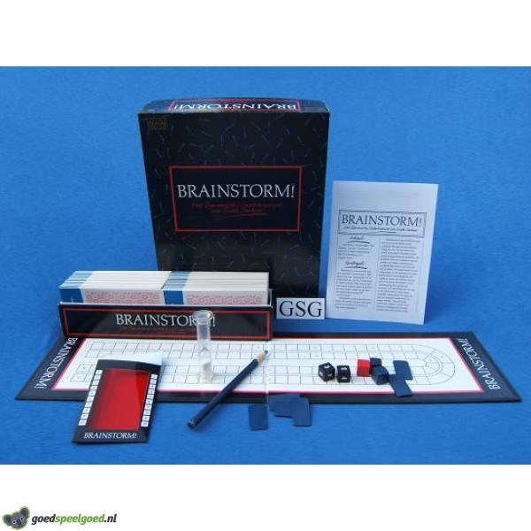Brainstorm is een spel dat gaat over bepaalde onderwerpen. Elke kaart bevat een onderwerp en 10 antwoorden. Probeer als team zoveel mogelijk antwoorden goed te hebben en verdien hiermee zoveel mogelijk punten. Het team dat als eerste aan het einde van de spiraal op het bord is heeft gewonnen. Let op! Spel en doos vertonen zichtbare gebruikssporen. Kompleet met handleiding. Geschikt voor 2 teams in de leeftijd vanaf 12 jaar.
