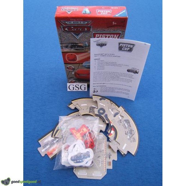 Luid brullen de motoren van de deelnemers. Aan het eind van deze race zal de grote winnaar bekend zijn en daarmee ook de winnaar van het Dinico-sponsorcontract. Vier rondes moeten Bliksem McQueen en zijn concurenten op de racebaan afleggen. Help je snelle auto met veel dobbelgeluk als winnaar over de finish te rijden. Geef plankgas op de rechte stukken en wurm je behendig door de nauwe chicanes. Pas op dat je op het met olie vervuilde wegdek niet in een slip raakt. Kompleet met handleiding. Geschikt voor 2-4 spelers in de leeftijd vanaf 5 jaar.