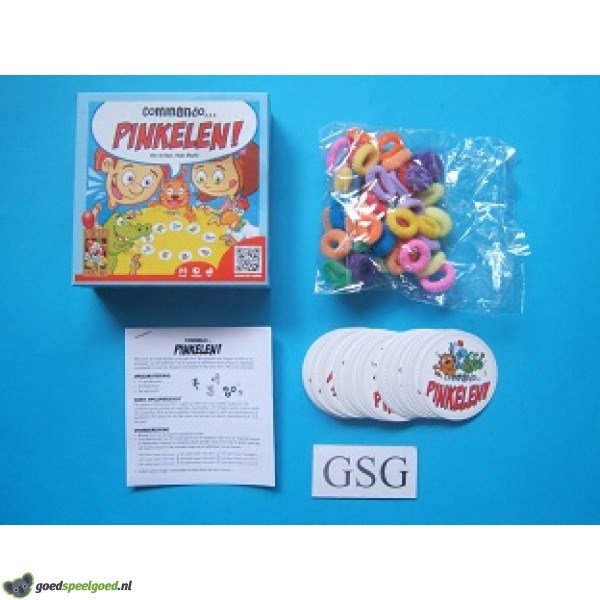 Alle spelers, met uitzondering van de spelleider, tokkelen op tafel met Commando Pinkelen. Als de spelleider een commando roept, een kleur of een symbool, moeten de spelers zo snel mogelijk hun hand op de juiste kaart leggen. Maar pas op, een commando is niet geldig als de spelleider geen "commando" zegt. Wie een fout maakt of te laat is, betaalt een strafpunt. Wie blijft als laatste over? Kompleet met handleiding. Geschikt voor 3-10 spelers in de leeftijd vanaf 4 jaar.