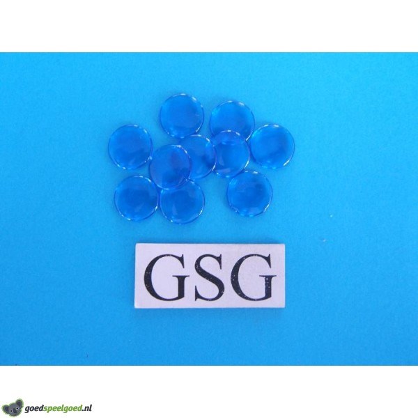 Set van 10 kunststof transparant blauwe fiches.