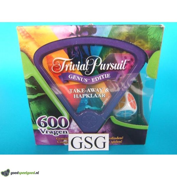 Eindelijk... hij is er! Trivial Pursuit heeft nu ook een eigen editie in reisformaat. Neen, dit is geen miniversie van het bekende spel met allemaal pietepeuterig materiaal maar een vlot spelende variant zonder speelbord. Het verzamelelement is gebleven: de speler die als eerste zes kaarten kan verzamelen is namelijk de winnaar. Om een kaart te verdienen moet een speler steeds twee opeenvolgende goede antwoorden geven. De grote kleurendobbelsteen geeft daarbij aan uit welke categorie een vraag komt. Op deze manier moeten steeds (minstens) twaalf goede antwoorden gegeven worden om te kunnen winnen. Kompleet met handleiding. Geschikt voor 2-24 spelers in de leeftijd vanaf 10 jaar. Deze set kan ook als aanvulset gebruikt worden bij alle andere basisspellen. Zit nog in de ongeopende originele verpakking.
