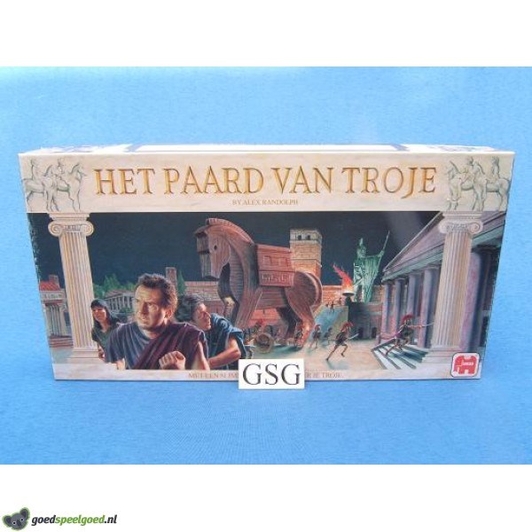 Ken je het verhaal van Troje nog? De Grieken willen de stad Troje veroveren en dit lukt maar niet. Dan bedenken ze een list. Ze verbergen zich in een houten paard en laten dit paard achter voor de stadsmuren. De Trojanen zijn zo dom dit paard hun stad in te slepen als trofee. Zodra het donker is komen de Grieken uit het paard en begint het spel. De spelers zijn de dappere Grieken. Maar die zijn het niet meer zo erg met elkaar eens, nu de list met het paard is gelukt. Ze proberen allemaal een zo groot mogelijk deel van de stad te veroveren. Het paard is het spel werkt als volgt. Er passen twee soldaten in het paard en als je er een derde in stopt dan valt de eerste er aan de onderkant uit. Het is erg belangrijk om daar de kleur van te onthouden. Kan jij op je geheugen vertrouwen? In jouw beurt mag jij bepalen in welke wijk van Troje de soldaten die uit het paard komen, worden geplaatst. Om het spel te winnen moet je een strategische positie voor jouw soldaten kiezen. Je mag kiezen hoeveel soldaten je in het paard stopt. Ga je voor het maximum, dan is daar moed voor nodig. Heb jij die? Als de rook na een spannende avond is opgetrokken wordt er geteld. Wie heeft zijn tegenspelers het handigst uitgespeeld? Wie de meeste wijken van Troje bezet, is de winnaar. Kompleet met handleiding. Geschikt voor 2-4 spelers in de leeftijd vanaf 8 jaar. Zit nog in de ongeopende originele verpakking.