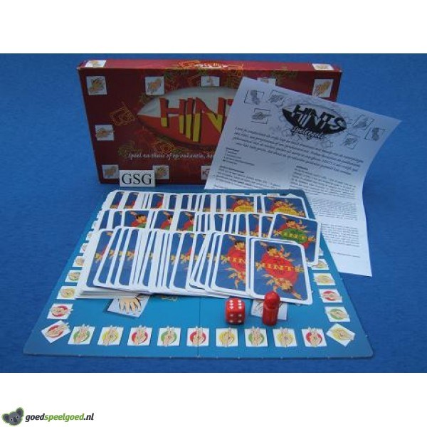 Hints is een spel waarbij niet gesproken mag worden. Je moet aan de rest van jouw of het andere team duidelijk maken welk woord of welke woorden combinatie je uitbeeldt, zonder erbij te spreken. De categorieën spreekwoord of gezegde, film, tv, lied, boeken en radio kennen vaste gebaren. Met gebaren moeten je teamleden binnen060 seconden raden wat wordt bedoeld. Kompleet met handleiding. Geschikt voor 3-12 spelers in de leeftijd vanaf 12 jaar.
