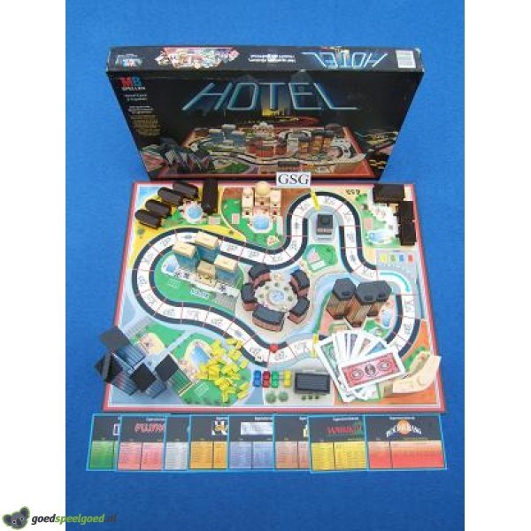 Het spel uit de luxe wereld van de grote hotels. Fortuinen worden gemaakt en verloren in dit spannende familiespel. Je vestigt een keten van hotels en probeert zo snel mogelijk rijk te worden. Wordt een rijke hotelmagnaat, bouw hotels, verwelkom je gasten en hoop dat ze nog meer uitgeven en dat ze zolang blijven dat ze hun rekening niet meer kunnen betalen. De speler die als laatste overblijft wint het spel. Let op! Doos is geplakt maar d einhoud is in bijna nieuwstaat. Bij dit spel zitten ook geen lantaarntjes (zijn niet relevant voor het spel). Kompleet met handleiding. Geschikt voor 2-4 spelers in de leeftijd vanaf 8 jaar.