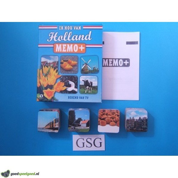 Memo is een van de meest populaire spellen in Nederland. Het is een echt familiespel, want hier hebben de kinderen dezelfde kans als de volwassenen. Bovendien wordt met dit spel het geheugen en het concentratievermogen geoefend. Ik Hou Van Holland memo+ met zijn vele mooie plaatjes van Nederland staat garant voor uren speelplezier voor jong en oud. Iedereen herkent de typische Hollandse plaatjes van bijvoorbeeld; lekkernijen als oliebollen, bitterballen of stroopwafels. Maar ook de dieren, prachtige monumenten, molens of vuurtorens komen aan bod. Voor elke leeftijd een feest der herkenning. Je kunt Ik Hou Van Holland memo + spelen in maar liefst vier spelvariaties! Kompleet met handleiding. Geschikt voor 2-10 spelers in de leeftijd vanaf 6 jaar.