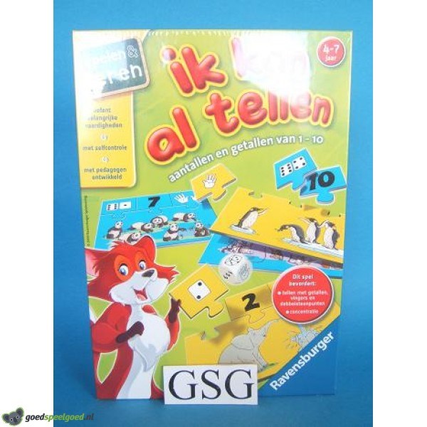 Met dit spel worden de kinderen spelenderwijs vertrouwd gemaakt met de cijfers 1 tot en met 10. Zo leren ze niet alleen tellen, maar ook hoe met behulp van dobbelsteenogen, cijfers en vingers, getallen afgebeeld kunnen worden. Kompleet met handleiding. Geschikt voor 1-4 spelers in de leeftijd van 4-7 jaar. Zit nog in de ongeopende originele verpakking.