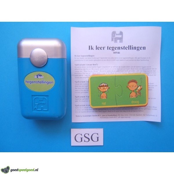 Ik leer maakt van leren kinderspel! Spelenderwijs alles leren over tegenstellingen. Dit spel bestaat uit 20 puzzelparen in een stoere opbergbox die je overal mee naartoe kunt nemen. Kompleet met handleiding en een stoere opbergbox... Geschikt voor 1 of meer spelers in de leeftijd van 4-7 jaar.