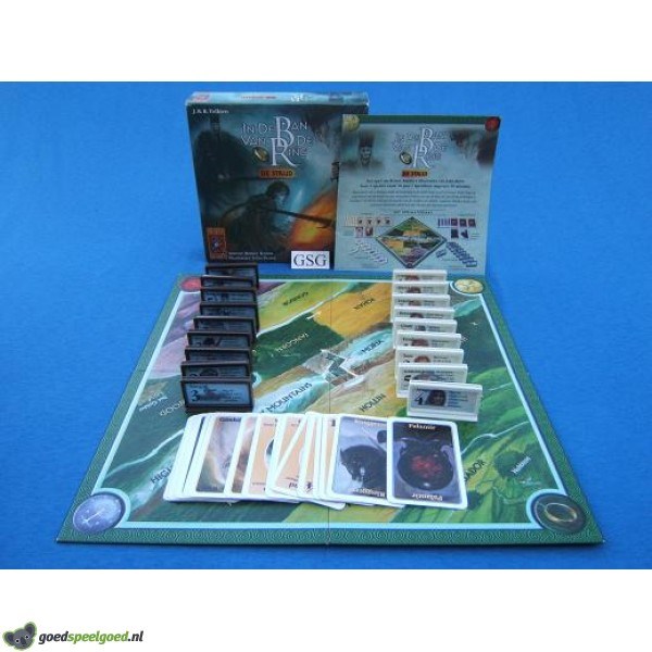 Frodo, de dappere hobbit, moet met zijn reisgezelschap de Ene Ring, die zo wordt begeerd door Sauron, naar de top van de Doemberg brengen en hem daar in de krater gooien. De onderdanen van het kwaad maken hen het leven zuur. Ze proberen ten koste van alles het reisgezelschap te vinden, ook al zijn zij verspreid over het speelbord. Hun missie is de Ring te pakken te krijgen. Slagen de duistere figuren erin Frodo te verslaan of Bag End te bereiken? Of lukt het Frodo om in Mordor te komen en de Ring definitief te vernietigen? Kompleet met handleiding. Geschikt voor 2 spelers in de leeftijd vanaf 10 jaar.