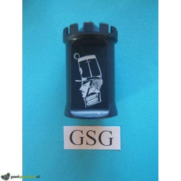Blauw-grijs spelstuk wat onder andere gebruikt kan worden voor het spel met het nr. 495, 497, 498 en 00498. Dit is een plastic spelstuk uit 1 stuk gegoten.
