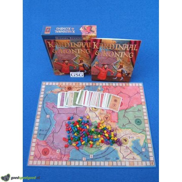 In de 12e eeuw strijden invloedrijke kloosterorden achter de schermen om de macht. De spelers staan voor een moeilijke opgave om machtsblokken te vormen. Hiertoe bouwen ze op cruciale plaatsen met behulp van speelkaarten kloosters en plaatsen ze raadsheren aan de hoven van de verschillende koninkrijken. Halverwege het spel worden de kloosters gewaardeerd en krijgen de spelers punten. Het venijn zit hem in de staart: bij de slottelling wordt niet alleen nogmaals naar de kloosters gekeken, maar ook naar de geplaatste raadsheren en de internationale verbonden die daaruit voortvloeien. Dit kan het uiteindelijke resultaat nog danig beïnvloeden. Kardinaal & Koning is door zijn eenvoud en elegantie de favoriet van velen. Dit komt wellicht doordat de spelers tegelijk aan de korte termijn (kloosters) moeten denken en aan de lange termijn (raadsheren). Kompleet met handleiding. Geschikt voor 3 -5 spelers in de leeftijd vanaf 12 jaar.