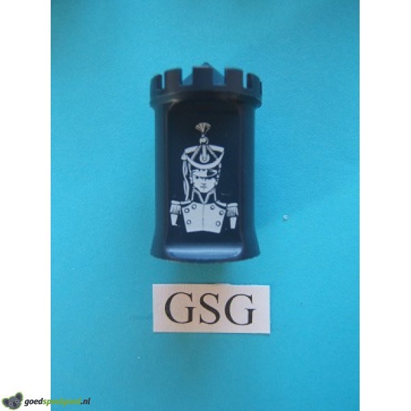 Blauw-grijs spelstuk wat onder andere gebruikt kan worden voor het spel met het nr. 495, 497, 498 en 00498. Dit is een plastic spelstuk uit 1 stuk gegoten.