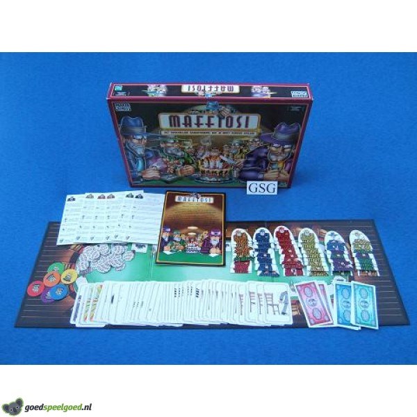Doe je ogen dicht en stel je voor: een achterkamer van een of ander restaurant in Chicago dat eigendom is van de maffia. Buiten regent het zo hard dat de zwerfkatten surfen in de dakgoten. Binnen is het een heel andere kwestie: dit is de tijd van de drooglegging en de kelen zijn droog..... erg droog. In de uitnodiging van Don Carlo stond niet zo veel. Maar je kan er natuurlijk niet onderuit. D'r wordt beweerd dat alle maffiabazen van de stad komen, met een paar mannetjes van hun familie natuurlijk. Het is hopen dat het feest niet door het een of ander wordt bedorven. Maar ja, wie kan er op een avond als deze de zacht brandende troost van een stevige slok whisky aan e tafel van de Big Boss weerstaan? Zorg alleen dat je voorbereid bent, dus vergeet niet je revolver te vullen voordat je je glas vult. Want er zal wellicht iemand een rekening te vereffenen hebben. Als jij uiteindelijk het meeste geld overhoud dan ben jij de nieuwe Big Boss. Geschikt voor 3-6 spelers in de leeftijd vanaf 8 jaar.