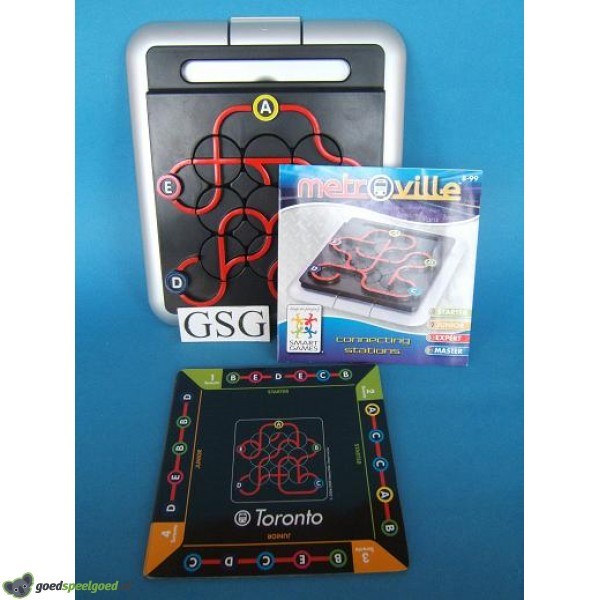 In deze solitaire puzzel (64 opdrachten) probeert een metro verschillende steden één- of meermaals in de opgegeven volgorde te passeren. De 9 wissels moeten daarvoor op de juiste manier gepositioneerd worden. Kompleet met handleiding. Geschikt voor 1 speler in de leeftijd van 8-99 jaar.