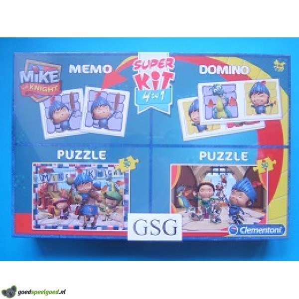 2 puzzels van 30 stukjes, een memospel en een dominospel van Mike the Knight allemaal in 1 doos. Kompleet met handleiding. Geschikt voor 2-4 spelers in de leeftijd van 4-8 jaar. Zit nog in de ongeopende originele verpakking.