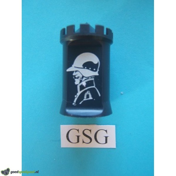 Blauw-grijs spelstuk wat onder andere gebruikt kan worden voor het spel met het nr. 495, 497, 498 en 00498. Dit is een plastic spelstuk uit 1 stuk gegoten.