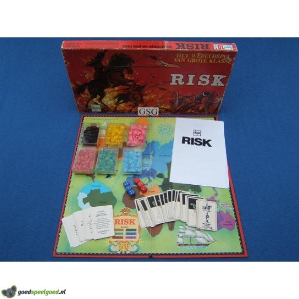 Het klassieke spel waar strategie belangrijk is. Het spel speelt zich af op de continenten van onze aarde. Een overwinning of nederlaag liggen vaak dichter bij elkaar dan u denkt. Gaat u voor de aanval of gaat u in de verdediging. Uw tegenstander heeft een geheime opdracht meegekregen. Gaat hij direct op zijn doel af of probeert hij u te misleiden. Om Risk te winnen moet u risico's nemen en veel inzicht hebben. Vergeet niet dat een dosis geluk hierbij de onberekenbare factor kan zijn. Onderschat uw tegenstander niet en bepaal de tactiek die u naar de overwinning leid. Kompleet met handleiding. Geschikt voor 2-6 spelers in de leeftijd vanaf 10 jaar.
