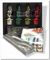 In Toru is het de bedoeling dat je 4 dezelfde muntjes plus nog eens 3 dezelfde muntjes op je scorebord verzameld. Heb je eenmaal 4 plus 3 dan roep je TORU en pak je zo snel mogelijk een draak van het midden van de tafel. Wie zonder draak zit heeft pech, want die krijgt geen punten. Wie als eerste 8 punten heeft, wint het spel.