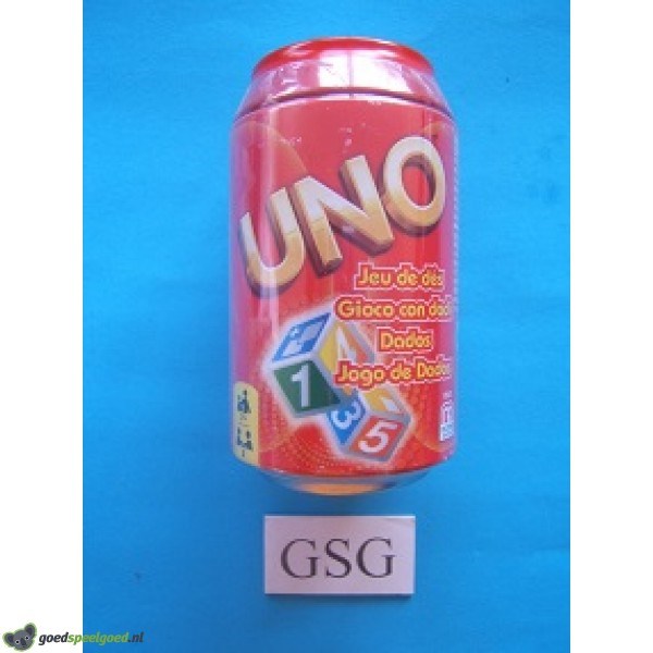 Ken jij het UNO dobbelspel al? Het is een leuke variant op het populaire UNO kaartspel. Dit leuke blikje bevat 11 dobbelstenen. Voordat het spel begint krijgt iedere speler 5 dobbelstenen. Om en om speel je een dobbelsteen die past bij de dobbelsteen die in het midden ligt. Als je niet kan,dan pak je een dobbelsteen van het midden en moet je alle dobbelstenen opnieuw gooien. Natuurlijk geldt ook hier dat je UNO moet roepen als je nog maar 1 dobbelsteen hebt. Als je dat vergeet, dan moet je voor straf 2 dobbelstenen pakken en weer opnieuw dobbelen. Wie het eeste door al zijn dobbelstenen heen is wint het UNO dobbelspel. Het Uno Dobbelspel is een echte aanrader voor een kort spelletje tussendoor en tevens ook erg geschikt voor op vakantie. Kompleet met handleiding. Geschikt voor 2 spelers in de leeftijd vanaf 7 jaar. Zit nog in de ongeopende originele verpakking.