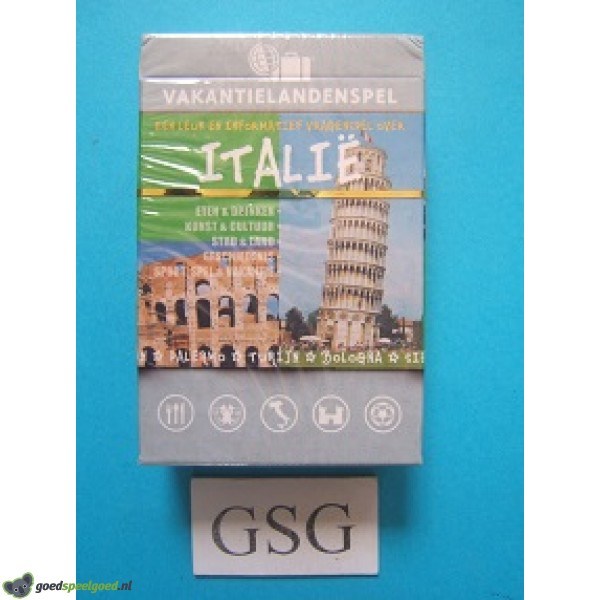 Informatief spel vol vakantieplezier over je favoriete vakantieland. Spelenderwijs leer je van alles over het land en de bewoners. Beantwoord zo veel mogelijk vragen goed en verzamel zo souvenirs. Wie er het meest heeft, is de winnaar. Voor thuis, onderweg en op je vakantie. Vragen in de categorieën: eten & drinken, kunst & cultuur, stad & land, geschiedenis, sport, spel & vakantie. Kompleet met handleiding. Geschikt voor 2-4 spelers in de leeftijd vanaf 10 jaar. Zit nog in de ongeopende originele verpakking.