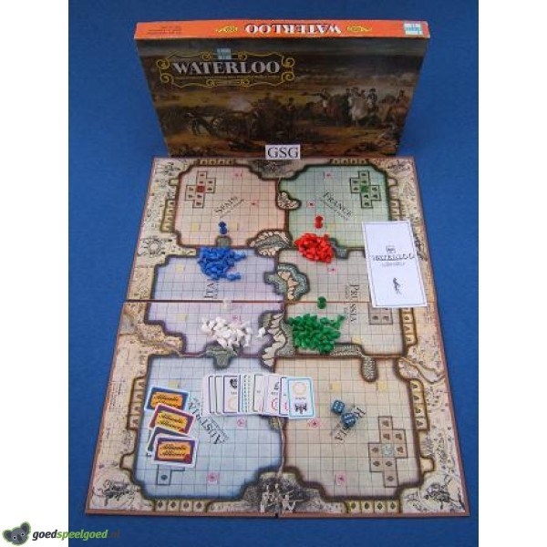 Kruip in de huid van Napoleon, Blucher of Wellington en beleef de slag om Waterloo. Stel je leger tactisch op en verover de gebieden van je tegenstander. Manoeuvreer je troepen behendig over het slagveld en versla je tegenstanders. Je bent winnaar van het spel als de hoofdstad van je tegenstander weet te bezetten of als je acht vijandelijke provinciesteden weet te veroveren. Kompleet met handleiding. Geschikt voor 2-4 spelers in de leeftijd vanaf 8 jaar.