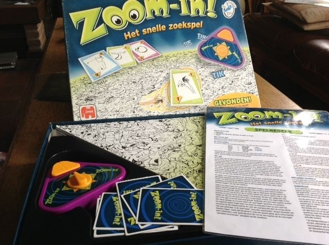 -Een groot rond bord, boordevol kleine zwart-wit tekeningetjes. Dit alles kriskras door elkaar, zodat het duizelt voor je ogen. En je raadt al wat de bedoeling is... zoek het plaatje. Bij dit overvolle drukke spelbord horen kaarten met de voorwerpen die op het bord staan afgebeeld. Er zijn vier categorieën kaarten, ieder met hun eigen kleur en moeilijkheidsgraad. Hoe moeilijker het plaatje verstopt zit op het bord, hoe meer punten de kaart oplevert. Daarnaast zit er in de doos ook nog een timer, want alles moet natuurlijk wel zo snel mogelijk gebeuren.