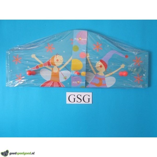 Leuke houten kapstok met drie ophanghaken waaraan uw kind haar of zijn kleding aan kan hangen. De leuke afbeeldingen van figuren met kroontjes maken de kapstok ook nog eens decoratief. Zit nog in de ongeopende originele verpakking.