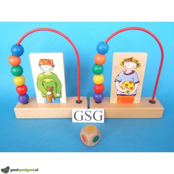 Gooi met de kleuren dobbelsteen en als je de eerste kleur gooit van je kleurenboog dan mag je de gekleurde bal naar de andere kant verplaatsen. Je mag alleen de bal verplaatsen als de gegooide kleur overeenkomt met de eerste vrije gekleurde bal. Wie als eerste alle gekleurde ballen aan de andere kant heeft gebracht wint het spel. Geschikt voor 2 spelers in de leeftijd van 4-8 jaar.