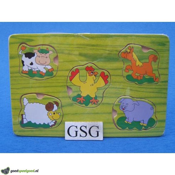 Houten legplankje met daarop allemaal dieren.