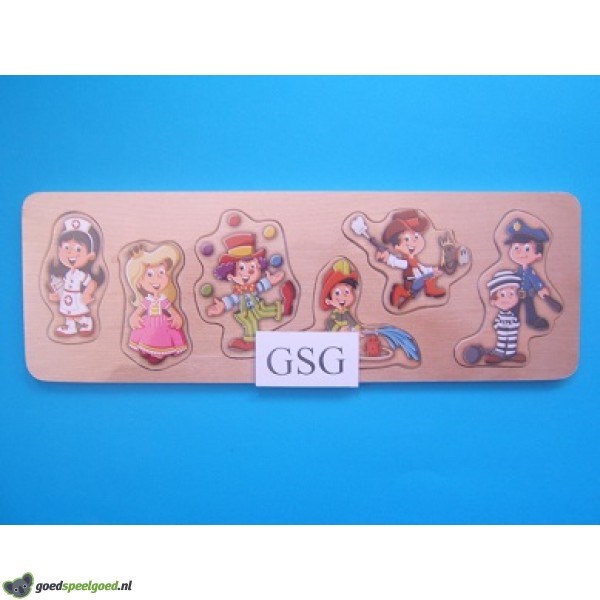Houten legplankje met daarop wat kinderen later willen worden als ze groot zijn. Zit nog in de ongeopende originele verpakking.