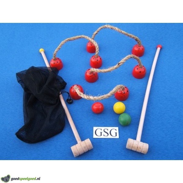 Leuke houten polo set. Geschikt voor de leeftijd vanaf 6 jaar. Wordt geleverd met zak.