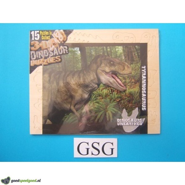 Houten 3D puzzel van een tyrannosaurus. Kompleet met bouwinstructies. Geschikt voor de leeftijd vanaf 6 jaar. Zit nog in de ongeopende originele verpakking.